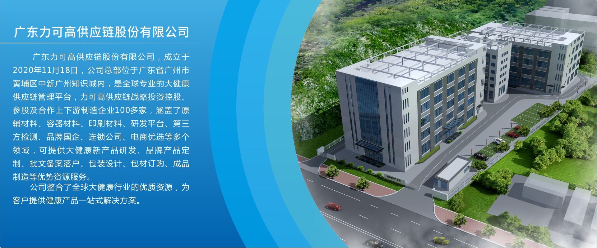 廣東力可高供應(yīng)鏈股份有限公司,成立于2020年11月,位于廣州市黃埔區(qū)中新知識城,公司注冊資本6000萬元。      力可高供應(yīng)鏈,作為一家在供應(yīng)鏈領(lǐng)域嶄露頭角的創(chuàng)新型企業(yè),正憑借其卓越的專業(yè)能力與不斷進(jìn)取的精神,重塑行業(yè)格局。已發(fā)展成為以生物醫(yī)藥大健康行業(yè)為核心,以投資并購、供應(yīng)鏈集采、供應(yīng)鏈金融、品牌運(yùn)營及跨境電商為一體的生物醫(yī)藥大健康產(chǎn)業(yè)鏈現(xiàn)代化企業(yè)。      力可高供應(yīng)鏈自成立以來,始終秉持“高效、協(xié)同、創(chuàng)新、共贏”的經(jīng)營理念,專注于生物醫(yī)藥大健康供應(yīng)鏈管理的全流程優(yōu)化,致力于為客戶提供一站式、定制化的供應(yīng)鏈解決方案。先后投資設(shè)立成長力國際控股、修···